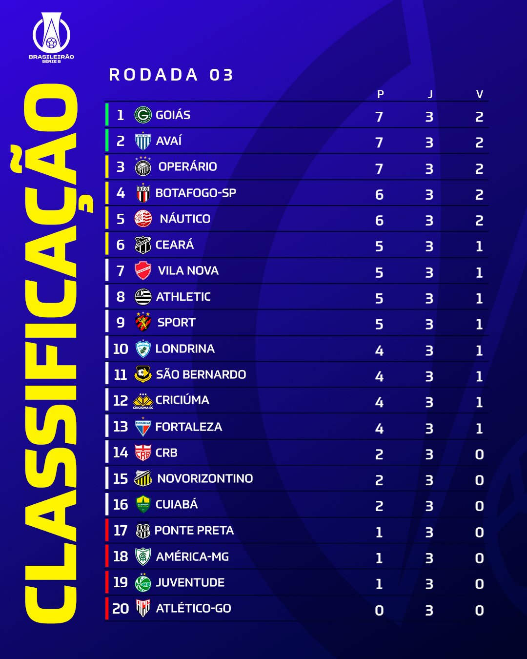 Confira abaixo todos os resultados da terceira rodada da Série B: