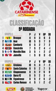 Confira abaixo todos os resultados da sexta rodada do Campeonato Catarinense: