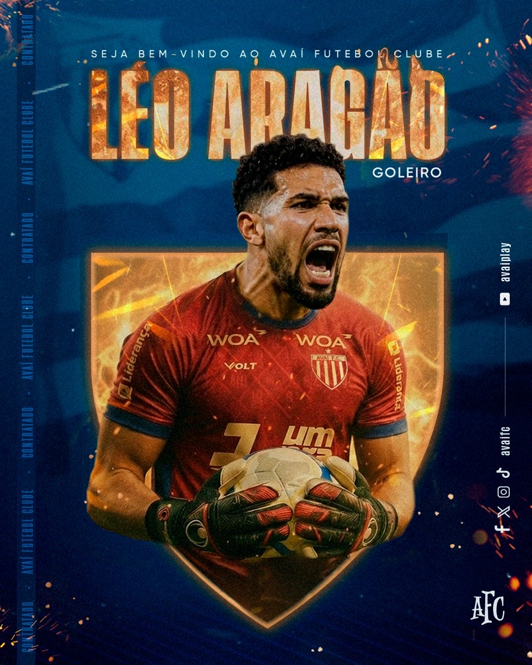 Saudações azurras. Nesta manhã, o Avaí anunciou oficialmente a contratação do goleiro Léo Aragão para a temporada. O arqueiro de 23 anos vem por empréstimo junto ao Cruzeiro até novembro deste ano. É um goleiro promissor, foi reserva de Cássio na última temporada, mas acredito que seja do mesmo nível de Otávio, que permaneceu. Pra mim, Otávio precisa ter uma sequência de jogos como titular na meta avaiana.